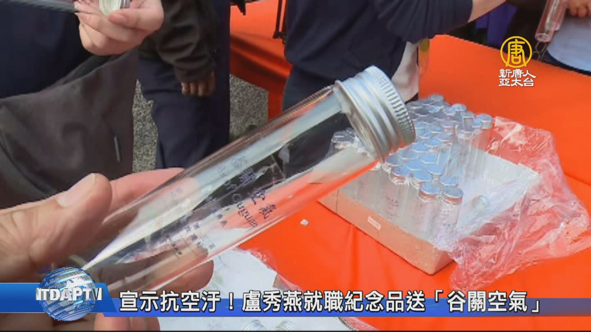 台中市長 盧秀燕:「這個真的是我們請人到谷關,採集的高山新鮮空氣,我們希望透過這樣特殊的紀念品,宣示我們整治空汙的決心,未來四年當中,我們要把整治空汙、還台中市民好空氣,當作我們最重要的市政任務,我們一定要改善空汙。」