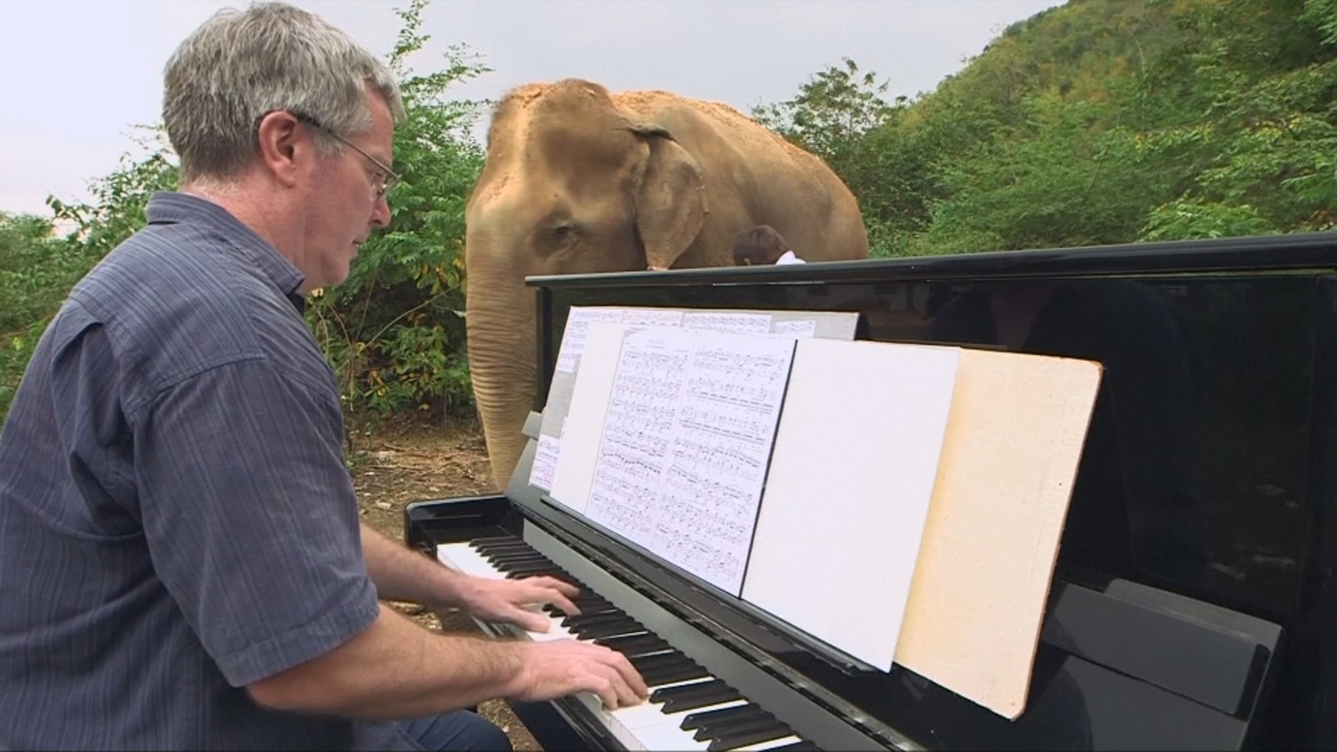 【新唐人亞太台 2018 年 12 月 26 日訊】有位長年旅居泰國的英國鋼琴家在最近八年來堅持不懈,為收容所年老殘疾的大象演奏優美的古典樂曲,希望這些療癒的音樂能陪伴大象安享天年。