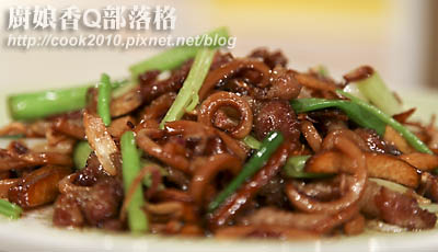 1. 將三層肉、魷魚、豆干切條,過油備用。