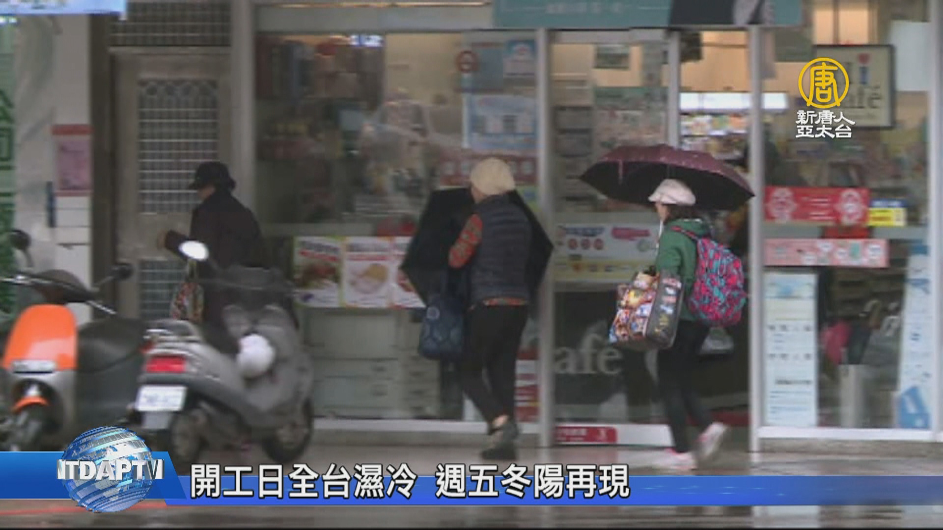 【新唐人亞太台 2019 年 01 月 02 日訊】今天是新年上班第一天,來關心天氣情況,今天持續受到東北季風影響,南方水氣也移向台灣,天氣還是偏濕涼,北台灣高溫約16到19度,其他地區20到23度。氣象局也針對宜蘭縣、基隆北海岸發布豪雨特報,大台北山區也有大雨特報。到了週五、六東北季風減弱,天氣轉趨穩定可以見到太陽,氣溫也會回升,不過週日又要變天了,有一波鋒面通過,北台灣再轉濕冷。