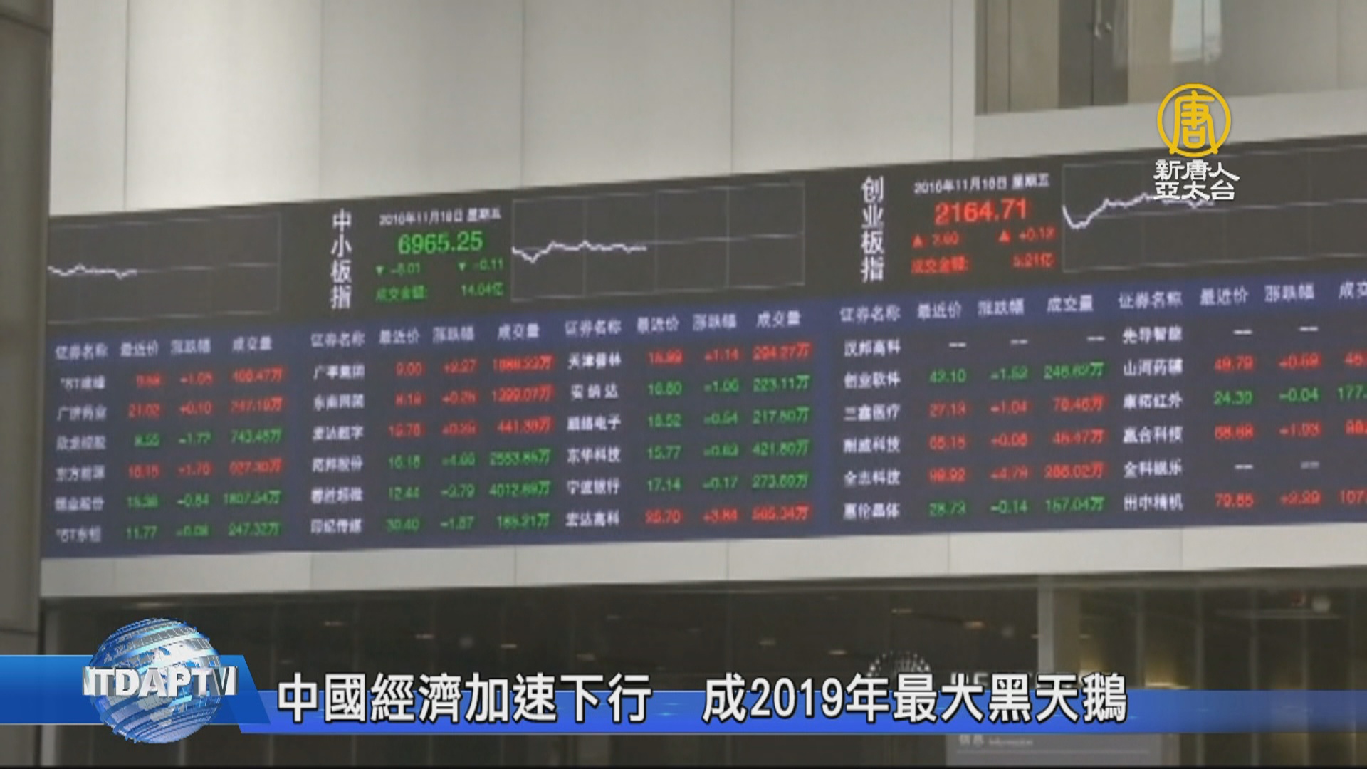 【新唐人亞太台 2019 年 01 月 02 日訊】不少外媒、研調機構紛紛警告,2019年一大風險,就在中國經濟加速下行,外媒指出,中國經濟展望轉差、科技業成長減緩,全球經濟受到波及,亞洲首當其衝。專家也警告,中國經濟今年是否在可控範圍趨緩成為關鍵,一旦止不住,資本市場將有驚濤駭浪。