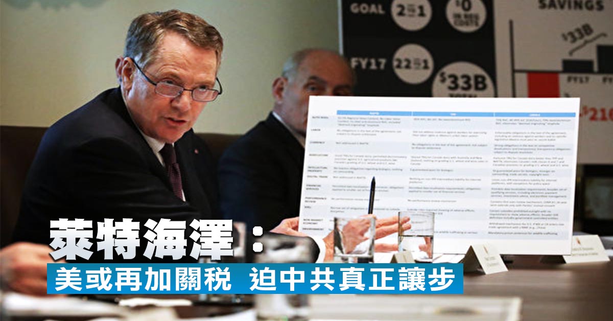 萊特海澤:美或再加關稅 迫中共真正讓步