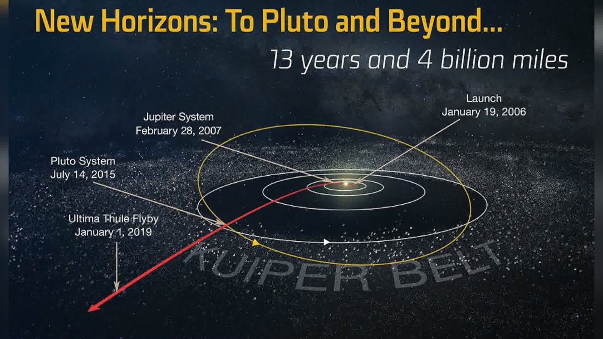 美國國家航空航天局的「新視野」(New Horizons)號探測器,將在1月1日午夜,飛躍目標行星「天涯海角」(Ultima Thule),這裡距離地球約41億英里,將創造人類近距離觀測太陽系天體的「最遠紀錄」。
