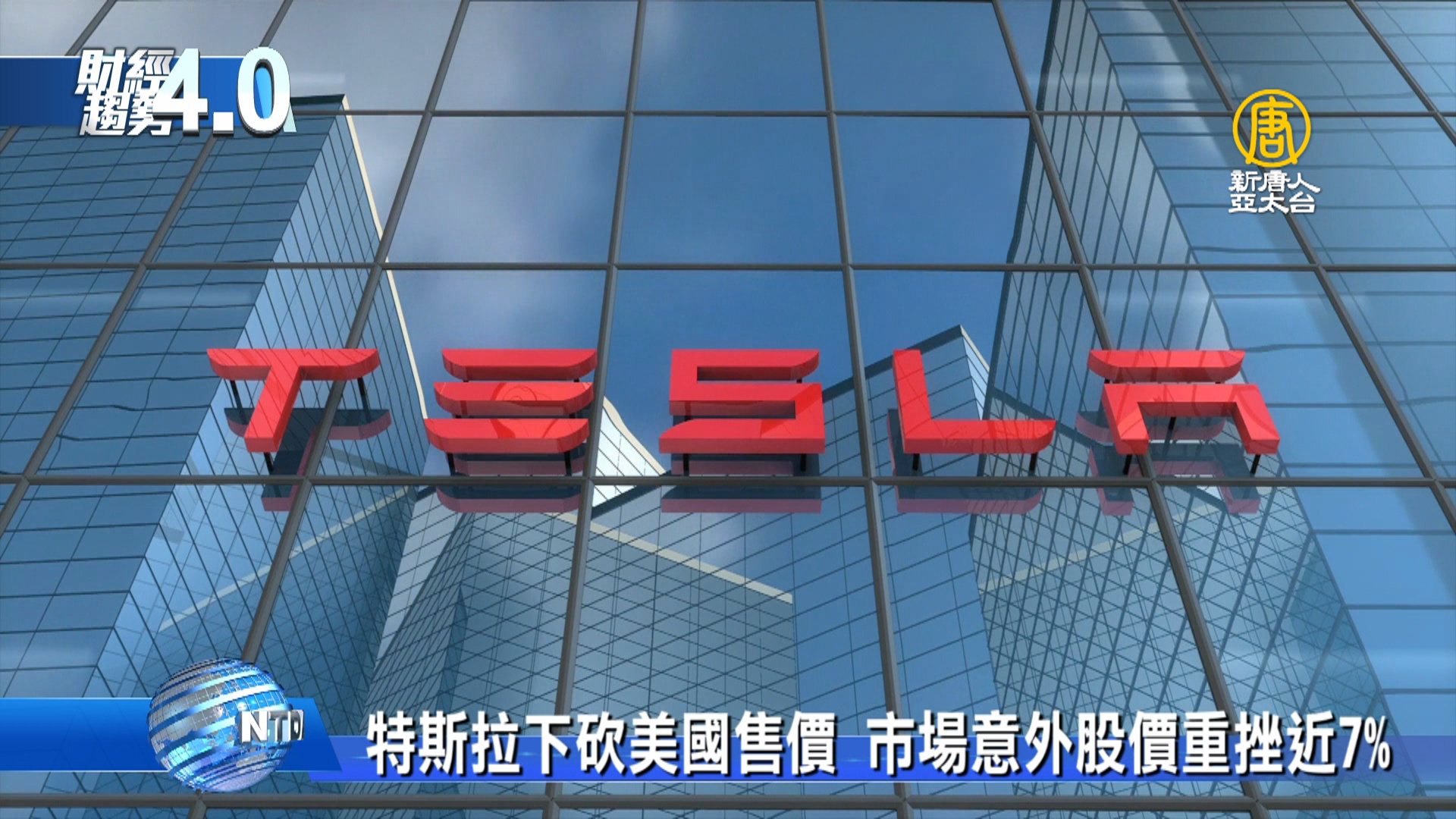 【新唐人亞太台 2019 年 01 月 05 日訊】再來看到,為了因應美國政府的電動車購車補助減少,電動車大廠特斯拉,本週宣布調降所有車款在美國的售價,加上平價車款Model 3上季交車量不如分析師預期,市場憂心特斯拉未來的獲利能力,這也讓特斯拉,在週三的股價,下跌了超過6%。