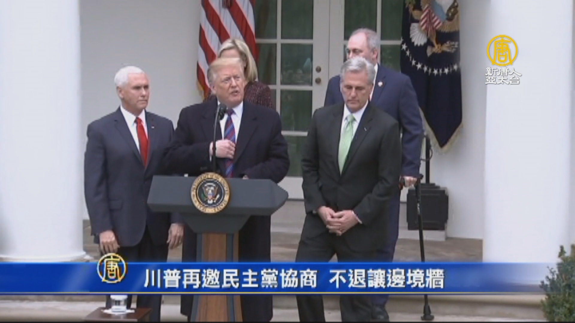 【新唐人亞太台 2019 年 01 月 05 日訊】為解決邊境安全和政府關門危機,美國總統川普,週五再邀民主黨國會領袖,在白宮軍情室進行協商。川普表示,沒有邊境牆撥款,政府會繼續部分關門。
