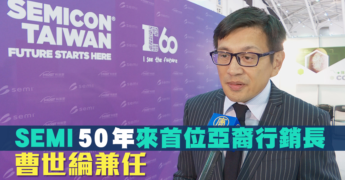 【新唐人亞太台 2019 年 01 月 08 日訊】在台灣半導體或綠能相關大型展覽,都能看到SEMI台灣區總裁曹世綸的身影,週二(8日),又增添新頭銜,兼任SEMI新任全球行銷長(Chief Marketing Officer),也是SEMI自1970年成立近50年來,首位亞裔行銷長。