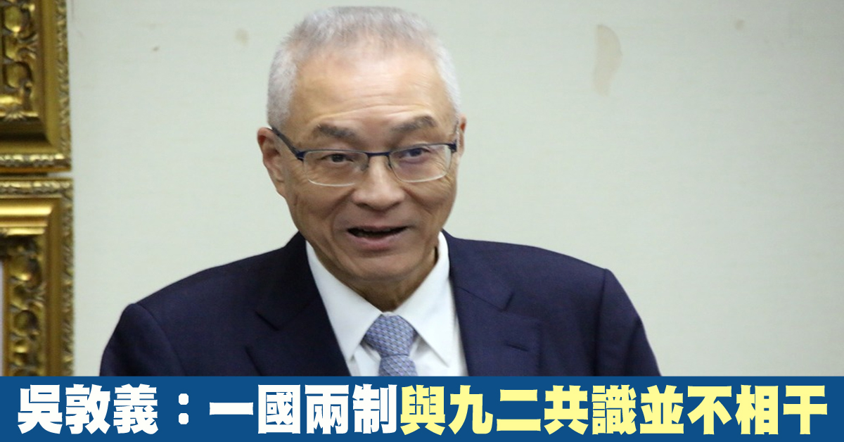 【新唐人亞太台 2019 年 01 月 09 日訊】中國國民黨在今天(9日)下午,舉行中常會,15位國民黨縣市首長首度列席,主席吳敦義在會議一開始,針對日前中國國家主席習近平所提的一國兩制,表示台灣民意難以接受,不過他也說:一國兩制與九二共識,兩者並不相干。