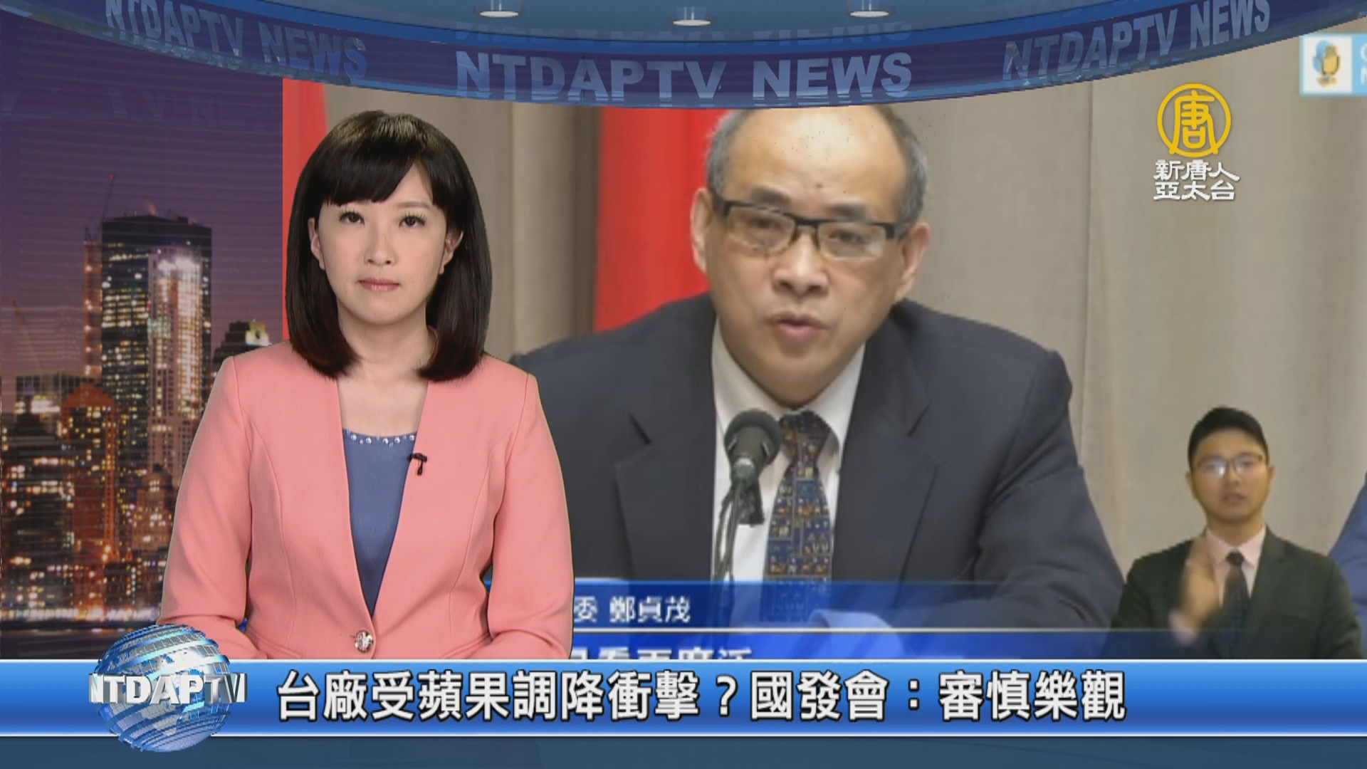 【新唐人亞太台 2019 年 01 月 10 日訊】蘋果自2002年以來,首度調降銷售業績預測,預期對全球相關的供應商,帶來廣泛衝擊,尤其台灣多數科技大廠,擔任蘋果代工角色,對此,國發會副主委鄭貞茂表示,台灣半導體的應用多元,不是只供應蘋果,5G、AI、自駕車,也都會用到半導體,因此要看得更廣泛。