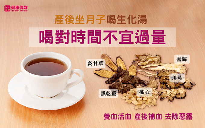 婦女產後喝生化湯調養很普遍,但殊不知喝對時間很重要。1名產婦剛坐完月子就來求診,主訴滴滴答答的「月經」仍未停止,直到坐完月子後仍在喝生化湯。對此中醫師表示,這類案例在臨床上時有所聞,許多人認為生化湯有助將惡露排除乾淨,深怕清不乾淨殘留在體內導致種下日後病根,於是服用過量留下惡露排不完、傷及子宮內膜的後遺症。