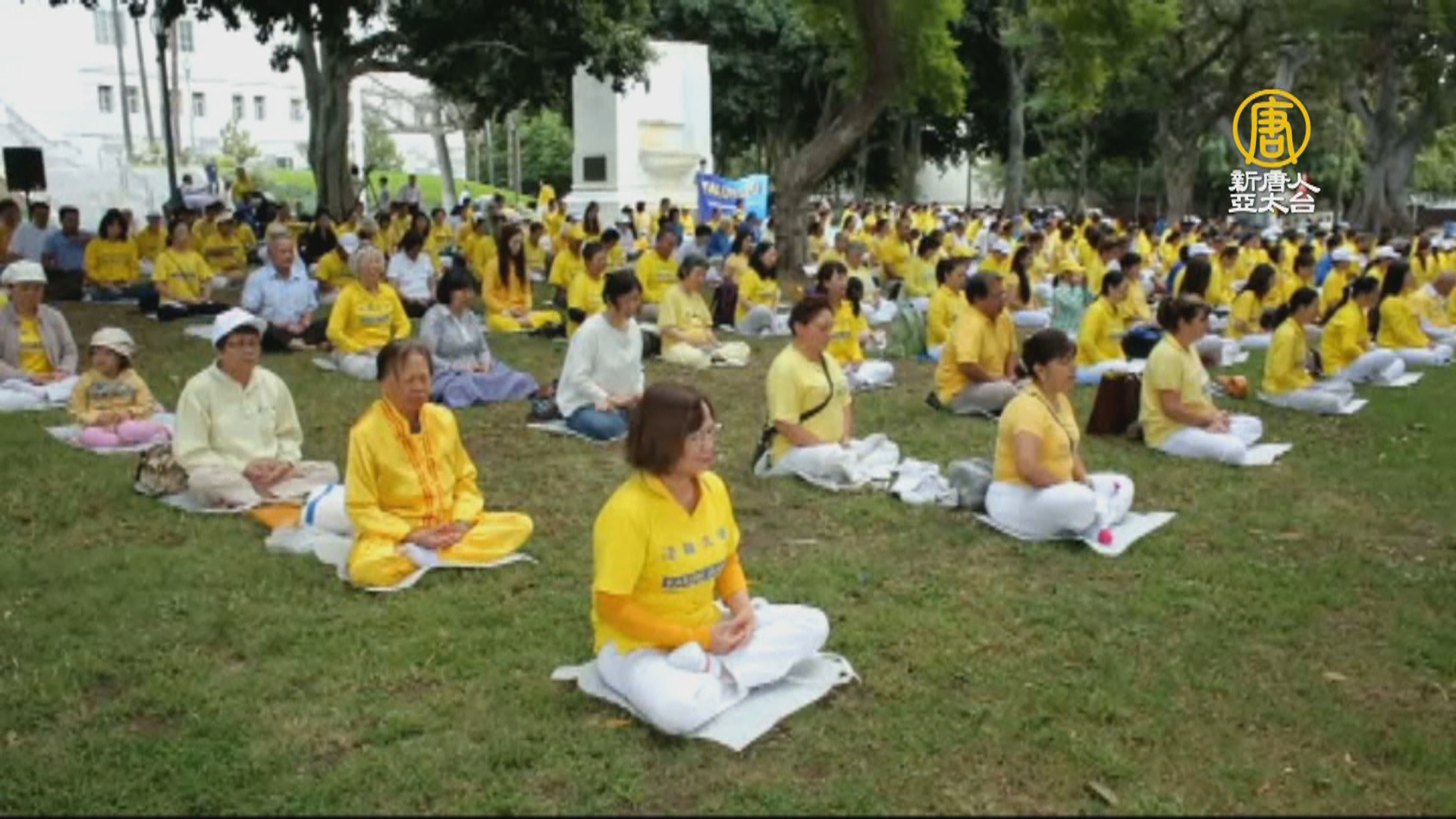 壯觀!5千位法輪功學員 自由廣場排出「九字真言」