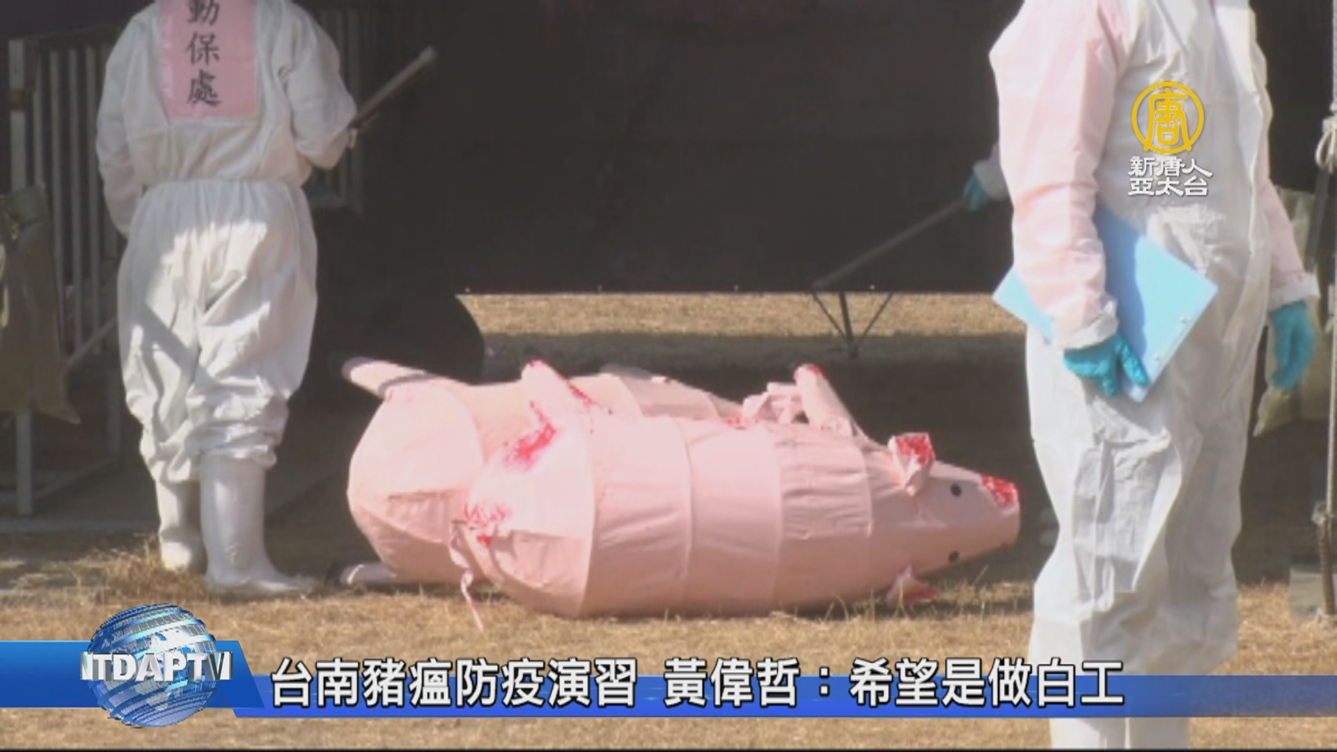 【新唐人亞太台 2019 年 01 月 14 日訊】非洲豬瘟來勢洶洶,台南市今天(14日)舉行非洲豬瘟防疫演練,市長黃偉哲表示,台南飼養豬隻57萬頭,是全台第4大養豬地區,六都中最多,希望非洲豬瘟不要發生,讓今天的防疫演習做白工。