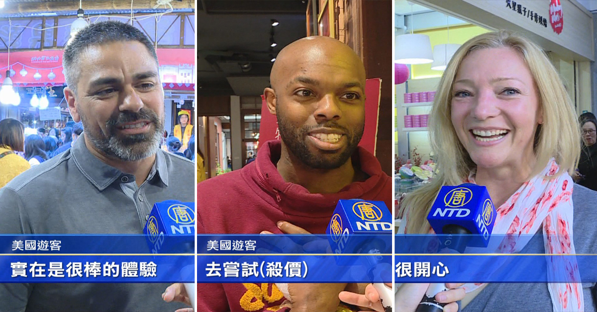 美國遊客:「我們帶著家人來這,來享受這邊的年貨大街,多種類的、好吃的美食,實在是很棒的體驗。」
