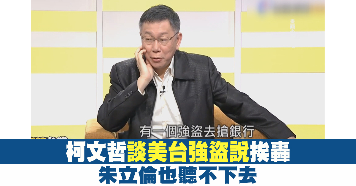 台北市長柯文哲,用強盜搶銀行比喻美中台關係,結果遭輿論罵翻,連朱立倫都聽不下去。