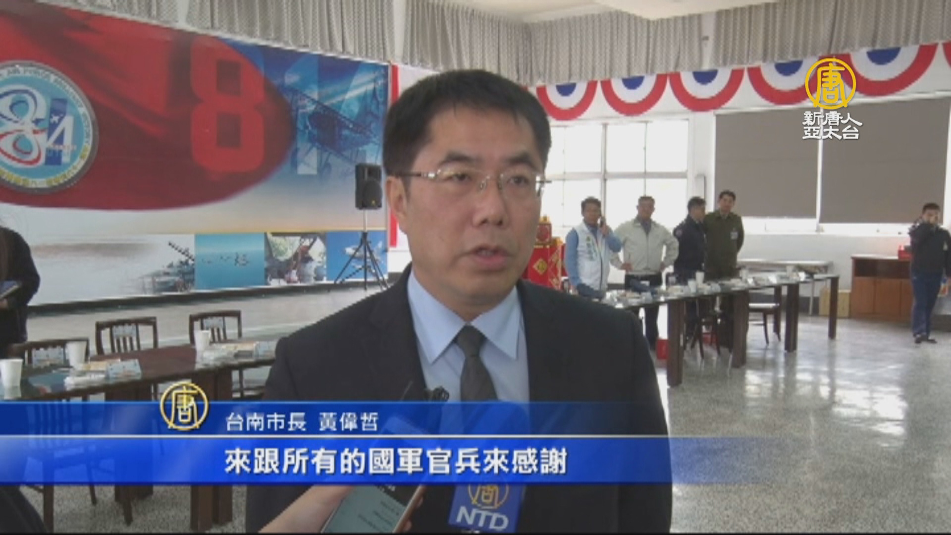 中國新年快到了,台南市長黃偉哲到台南空軍第一戰術戰鬥機聯隊慰問官兵辛勞,並表示,沒有軍隊就沒有國家,沒有空防就沒有國防,除了感謝國軍,也致贈加菜金及禮盒。