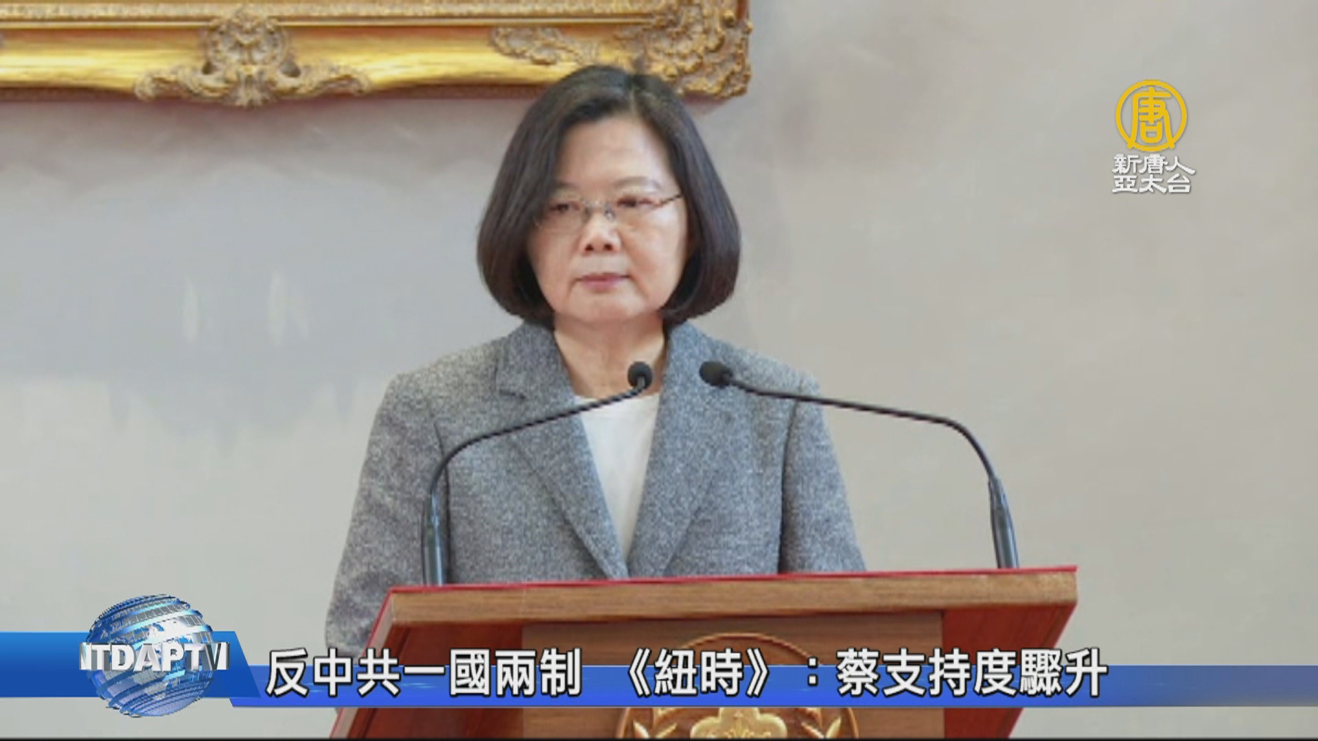【新唐人亞太台 2019 年 01 月 21 日訊】繼續來看到,紐約時報(20日)報導,蔡英文因為明確拒絕一國兩制、呼籲北京邁向民主,民意支持飆升。台灣民意基金會21日發布民調,蔡英文一個月內民調滿意度上升10%。此外,67%民意反對一國兩制。