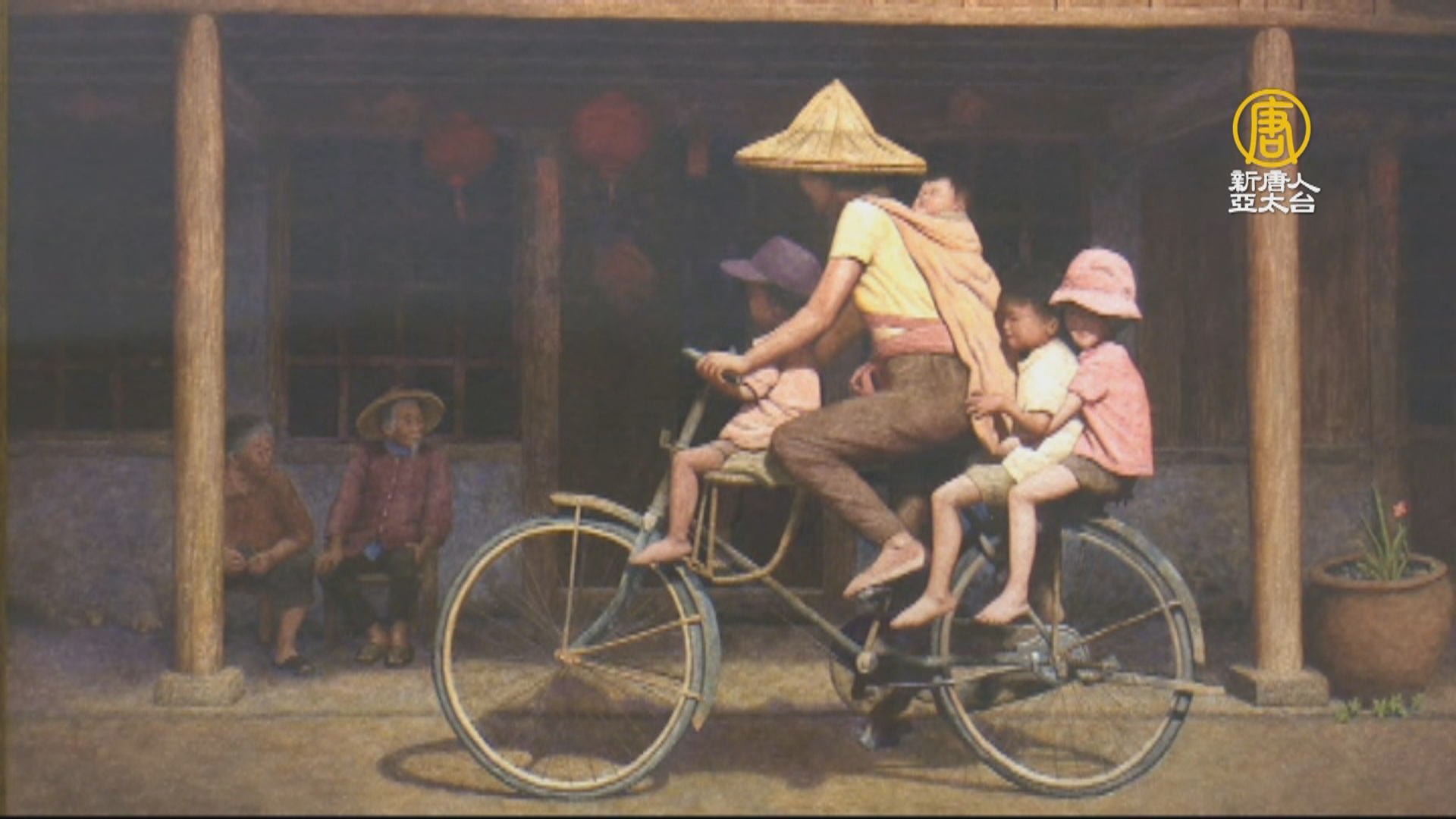 藝術家 陳文福:「我畫這幅畫,最主要是讚賞台灣的婦女們,1、2、3、4生這麼多,古時候的女人,還要到田裡工作,還要帶小孩,然後回家還要煮飯。」