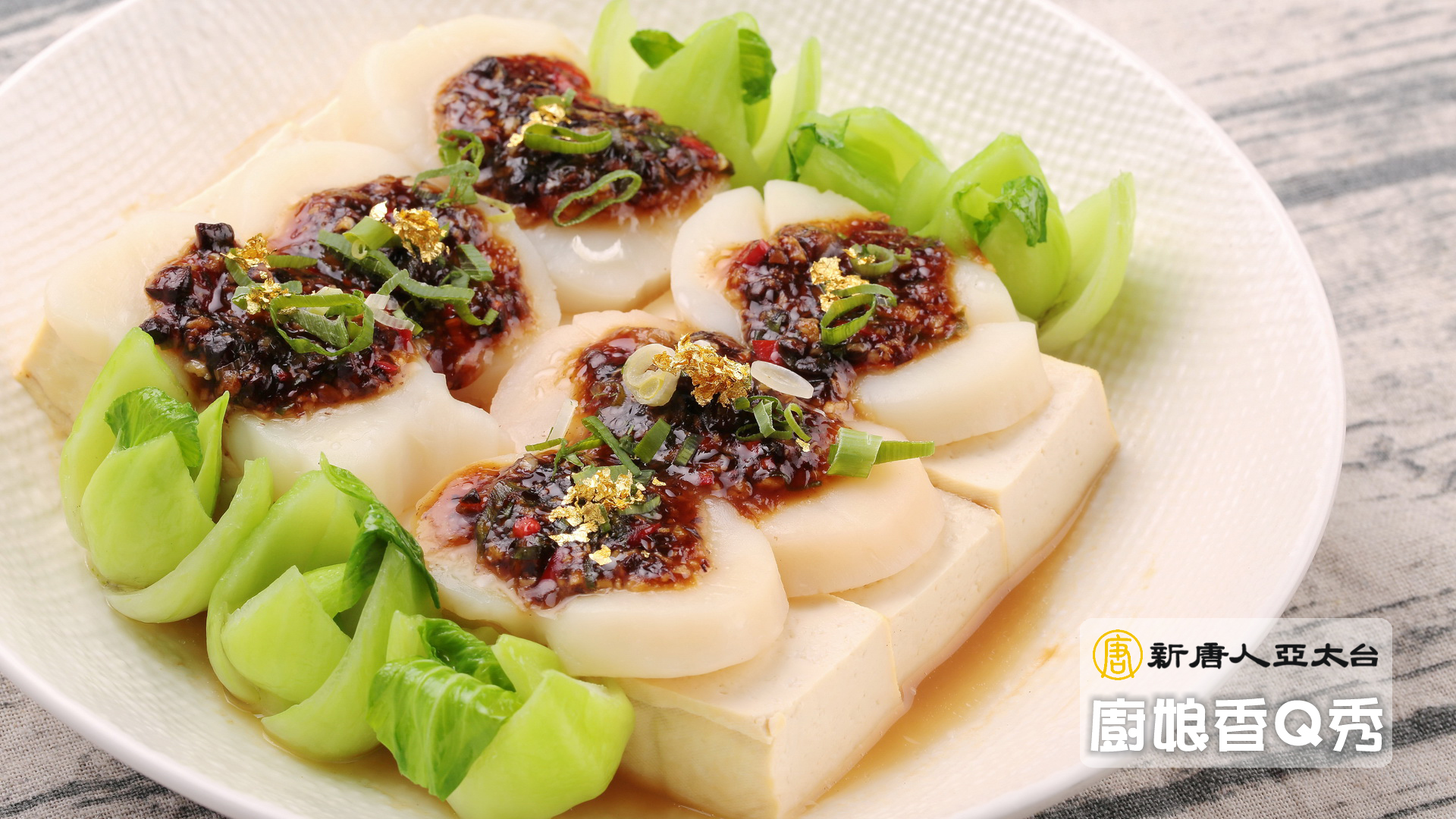 入口即化的豆腐加入高品質干貝,透過參賽得獎無數的主廚李哲松的好手藝,老少都愛的千歲爺豆腐傳承廣東菜老師傅精華。砂鍋蒜子焗龍膽採用龍膽石斑魚片以及豆豉、柱侯醬,再與大蒜、辣椒等做完美的調味,千歲爺豆腐/砂鍋蒜子焗龍膽,每一口都是幸福好滋味!