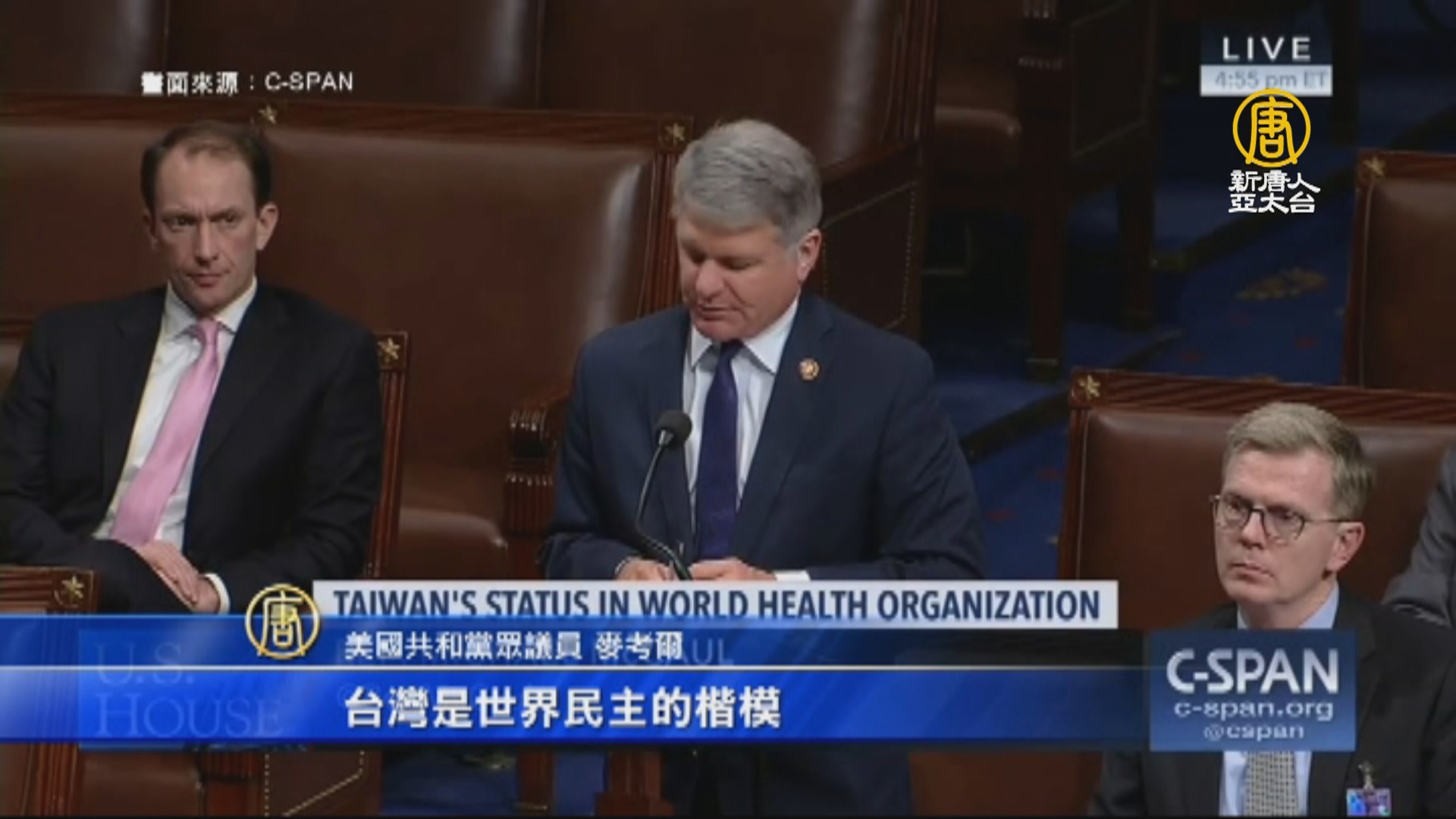 【新唐人亞太台 2019 年 01 月 24 日訊】美國眾議院22日通過支持台灣重返世界衛生組織法案,參與連署的議員麥考爾,在國會發言提到,台灣讓世界更美好,中共則讓世界處於風險,他強調「台灣永遠不會在我們的關心下消失」。