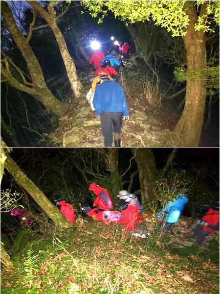 23日16時06分林務局駐守人員回報已接觸傷者,傷者尚可緩慢行走,協助前往檜谷山莊,19時20分經評估傷者疑似肋骨有斷裂,暫留宿於檜谷山莊,24日5時50分傷者無法自行行走,以軟式擔架協助搬運至檜谷山莊附近平台並申請空勤總隊直昇機支援後送傷者,07時49分吊掛成功前往台東機場,由台東縣消防局將患者送至台東馬偕醫院就醫。