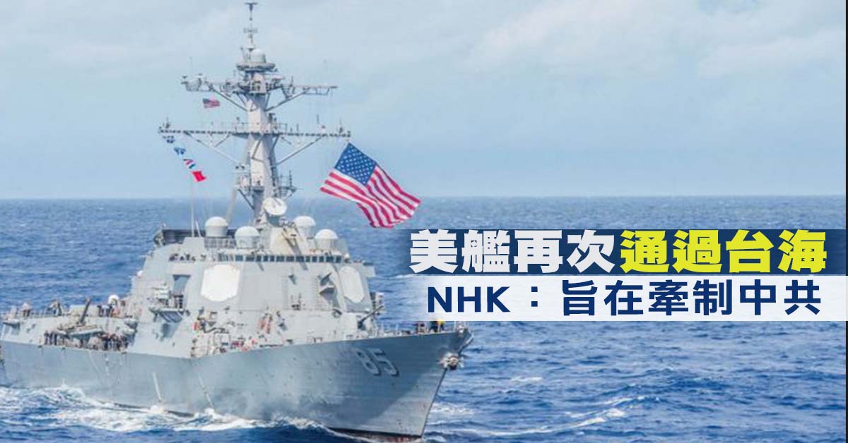 【新唐人亞太台 2019 年 01 月 25 日訊】再來關心,美國兩艘軍艦昨天(24日)通過台灣海峽,日本NHK報導,認為此舉是為了牽制,在貿易及南海問題上與美國對立的中共。