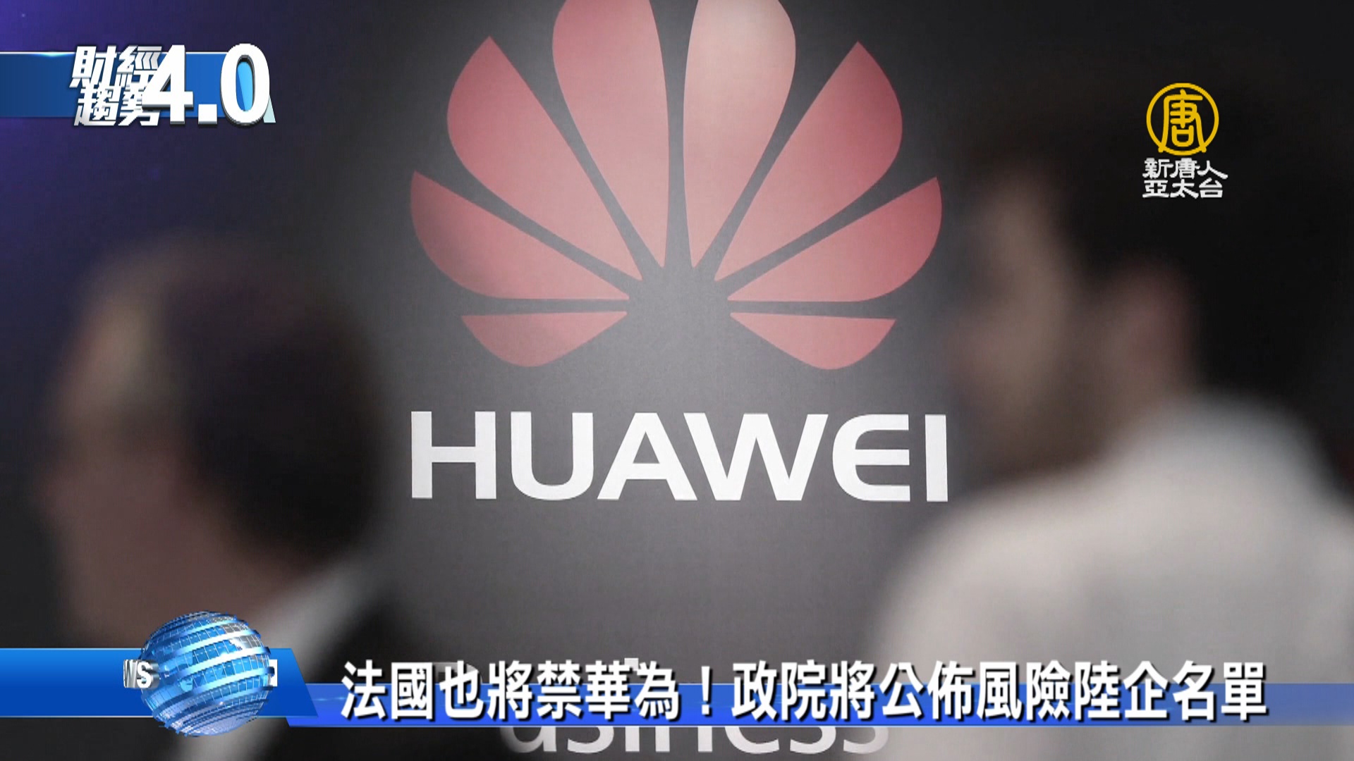 【新唐人亞太台 2019 年 01 月 26 日訊】關鍵時刻,帶您迅速掌握潮流趨勢,歡迎您收看財經趨勢4.0,我是趙庭譽。繼美國、澳洲、新西蘭、日本等國,對華為祭出禁令後,法國,現在,也正在考慮推出一個法案的修正案,目標,就是中國電信巨頭華為。那麼現在不只中興華為,引發全球的資安疑慮。目前,台灣政府是再更進一步,編制一份陸企風險清單,要來給公部門機關 參考。