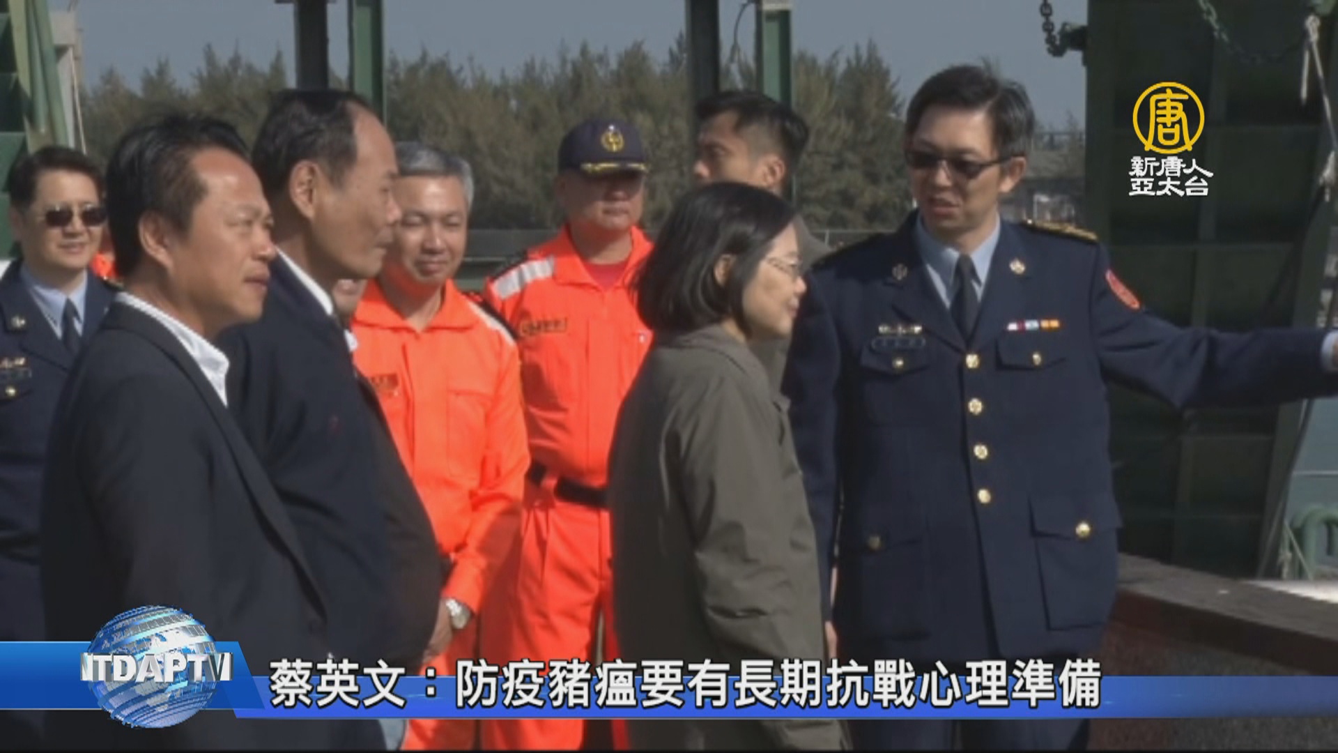 【新唐人亞太台 2019 年 01 月 26 日訊】新聞一開始,帶您看到,總統蔡英文,今天(26)前往嘉義,慰問海巡人員。蔡英文表示,防制非洲豬瘟,需要做好長期作戰的心理準備,將疫情阻絕在境外。