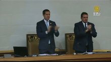 2020-01-07 20:53:20委內瑞拉議會,週日選舉2020年議會領導人。馬杜洛政府聯合軍方,阻擋現任議長瓜伊多及其支持者進入。但瓜伊多在議會外,再次被推選為議長。