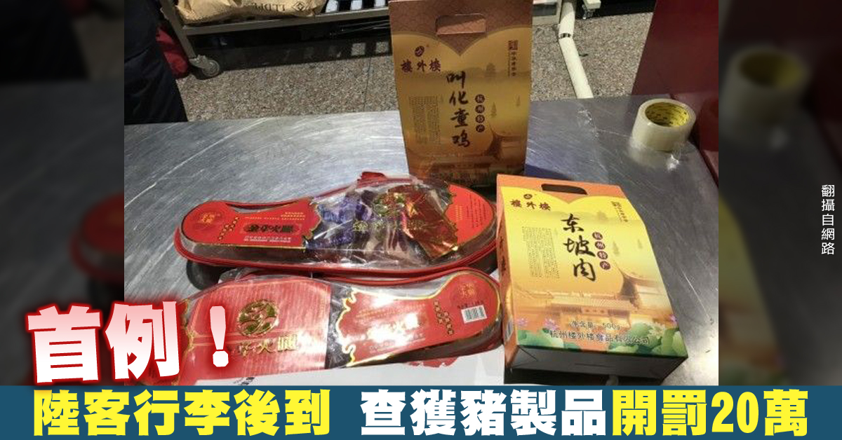 首例!陸客行李後到 查獲豬製品開罰20萬