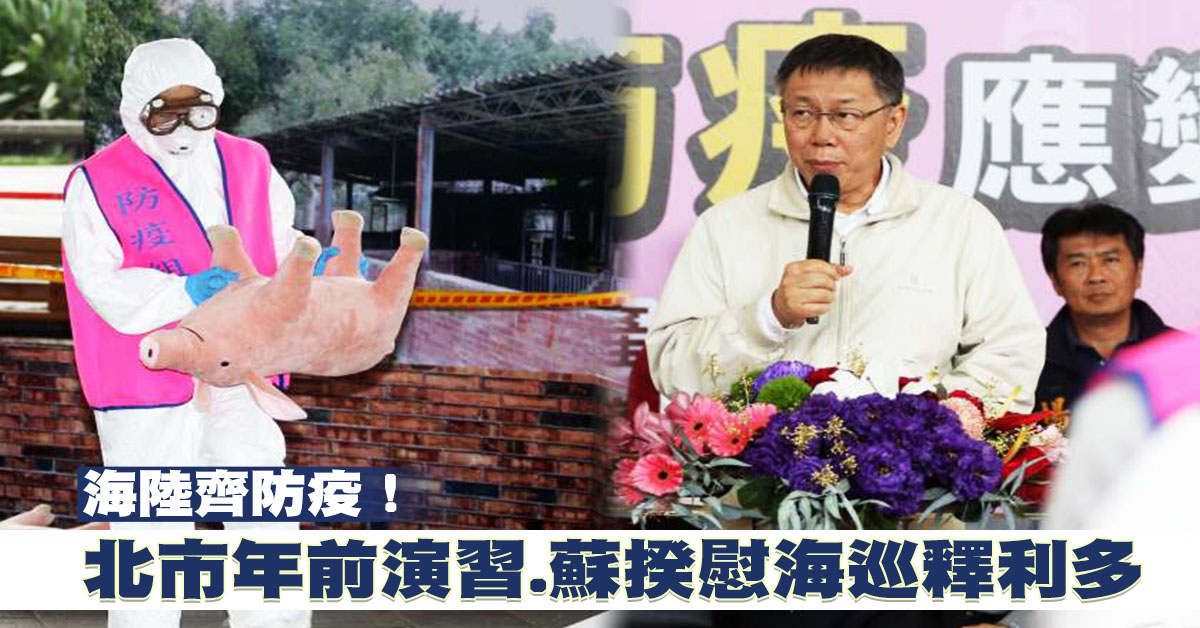 【新唐人亞太台 2019 年 01 月 31 日訊】帶您來看到,非洲豬瘟的疫情在中國大陸嚴重蔓延,台灣的防疫動起來,不管是陸地上的演習,邊境檢疫工作,或是海上的海巡隊員防疫工作,都繃緊神經。在年前,台北市進行了防疫演習,行政院長蘇貞昌,也特地到海巡基地慰問辛苦的弟兄。