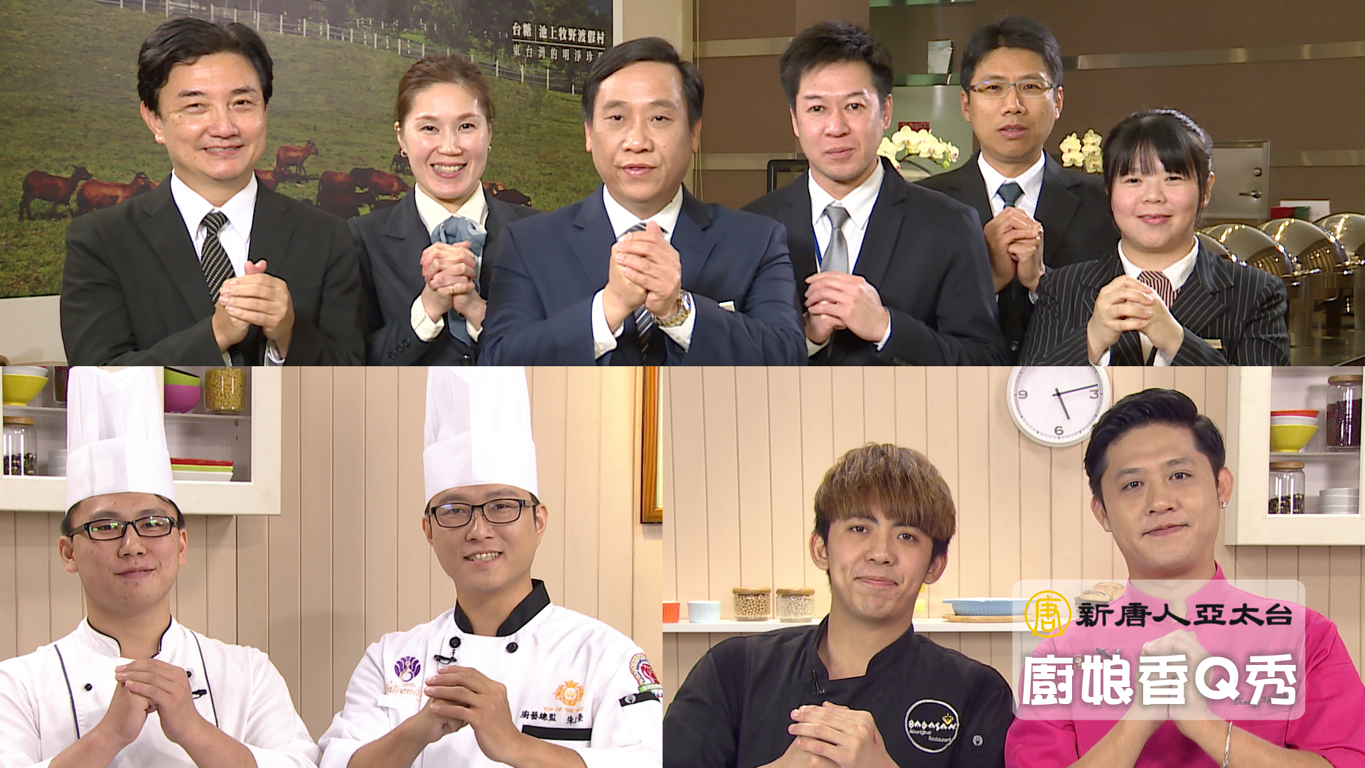 台糖會館總經理吳政穎暨員工 /主廚朱建榮、葉喬銘 /世廚賽金牌張克勤、王啟軒 恭賀新唐人全球觀眾朋友 健康幸福。