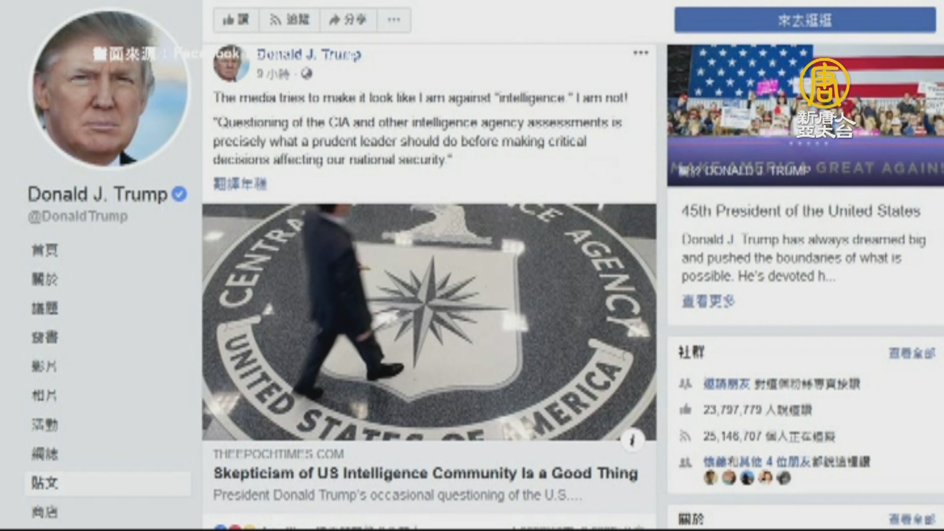【新唐人亞太台 2019 年 02 月 01 日訊】美國總統川普,週四在臉書轉發英文大紀元的專欄文章,除了引用部分原文內容表贊同外,他還重申其它媒體的報導不屬實。川普直接引述英文大紀元專欄昨家羅傑斯的文章,寫到「在作出影響我們國家安全的關鍵決定之前,總統對中央情報局和其它情報機構評估保持質疑,恰恰是謹慎的領導者應該做的事。」川普反駁左派媒體指控,他說「媒體想讓這事看起來像我在反對情報界。我沒有這樣。」羅傑斯是退役美國海軍情報官員,現在是川普2020總統競選顧問委員會成員。
