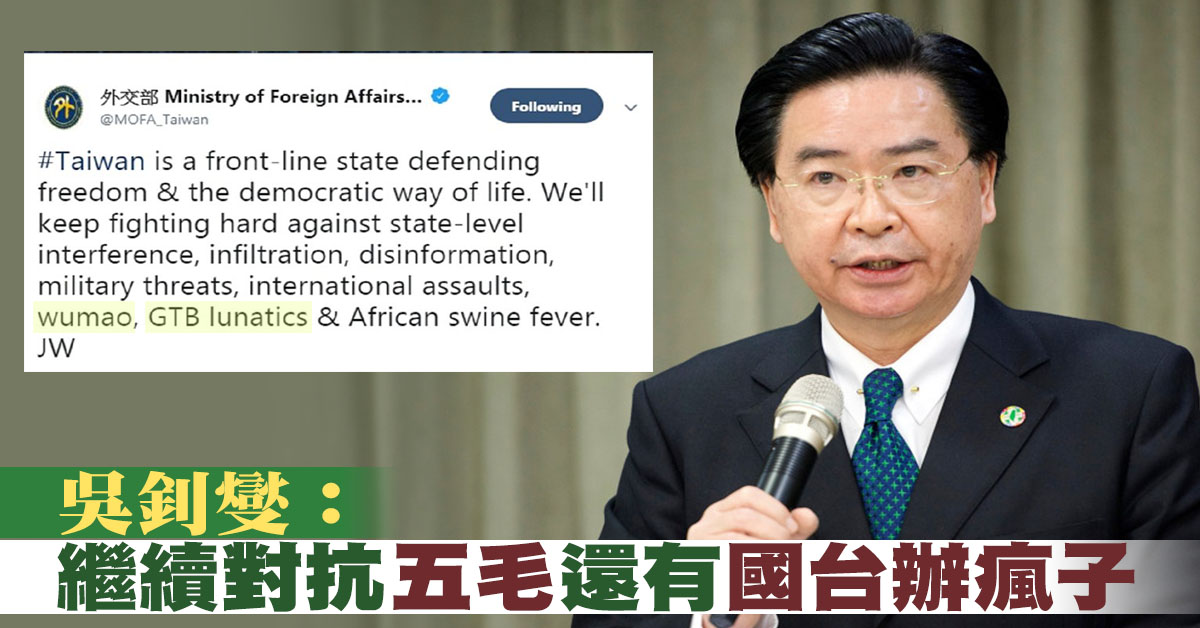 吳釗燮:繼續對抗五毛還有國台辦瘋子