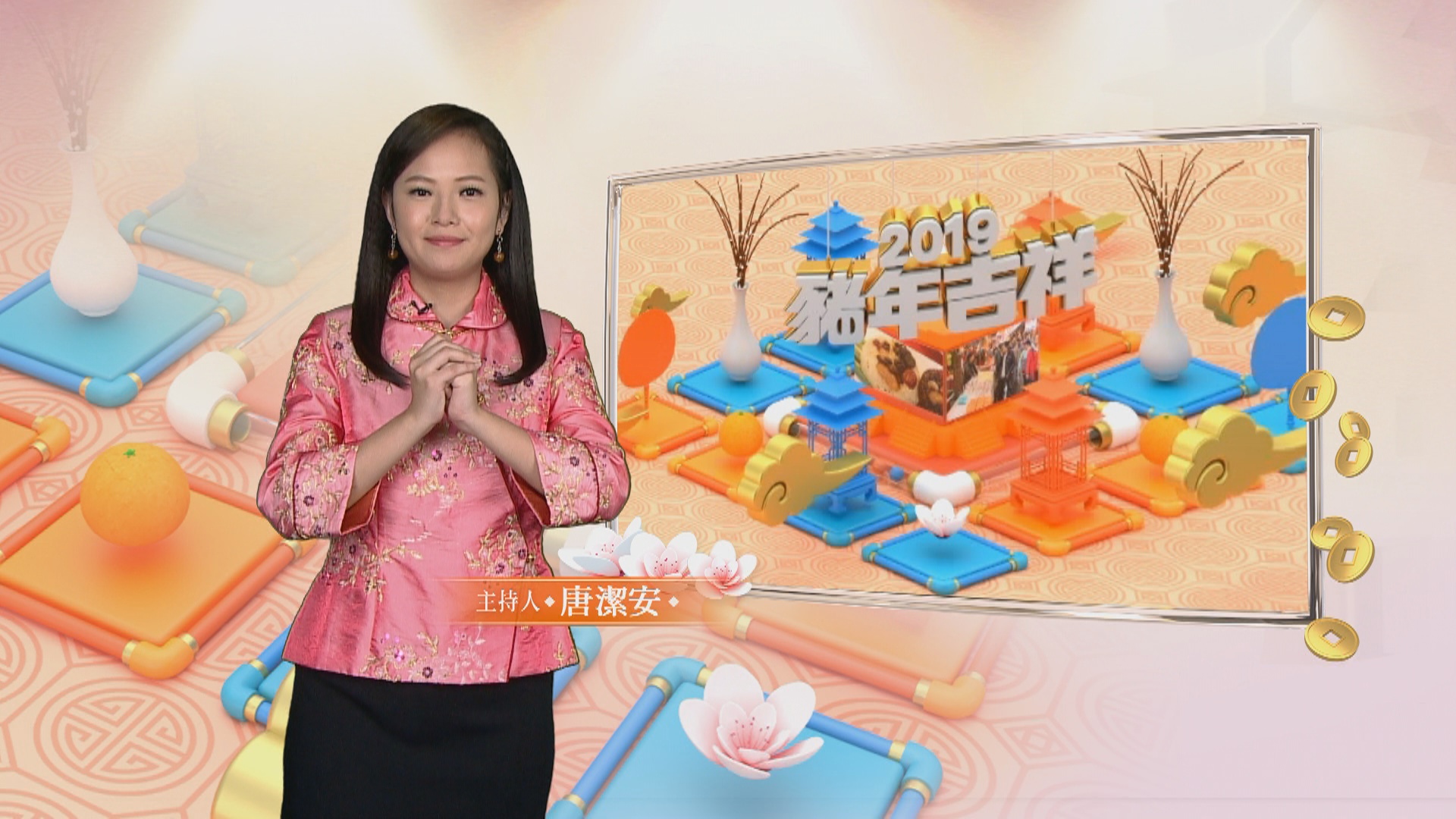 在各位觀眾除夕圍爐的這個時候,跟您拜個年,祝您諸事順利吉祥,豬年行大運。