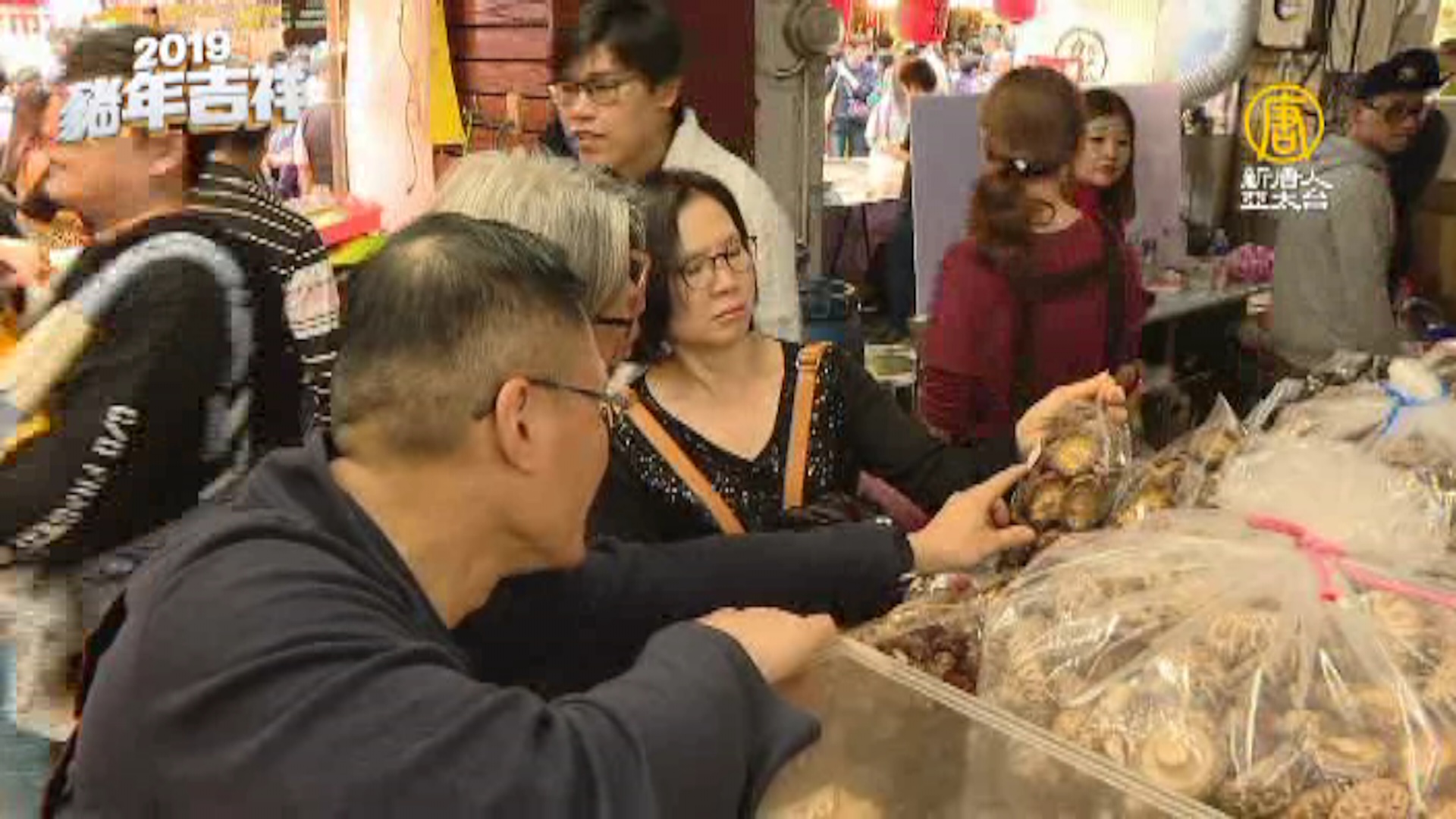 台北迪化商圈發展促進會理事長 徐慶棋:「比往年的話都不同,今天是人擠人,如果送禮的話,我們會比較推我們的台灣香菇,因為有些海產品的話,天氣的關係,貨源比較少。」