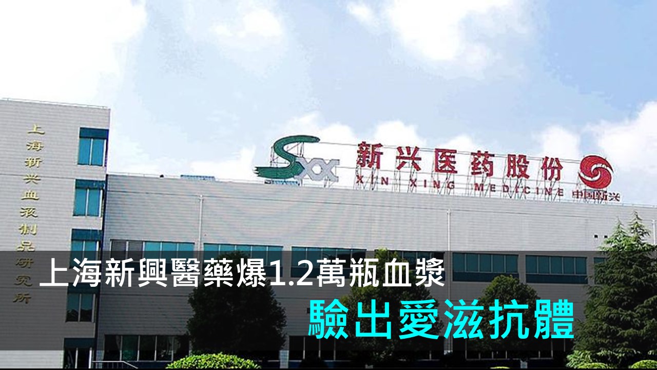 上海新興醫藥爆1.2萬瓶血漿 驗出愛滋抗體