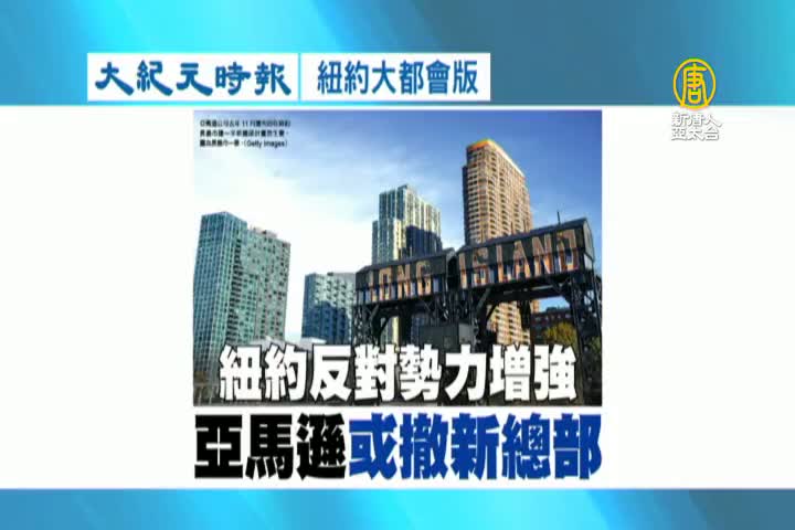 【新唐人亞太台 2019 年 02 月 11 日訊】接著看到大紀元時報紐約大都會版報導:美國紐約反對勢力增強,電子商務巨頭亞馬遜可能取消在紐約設立新總部。