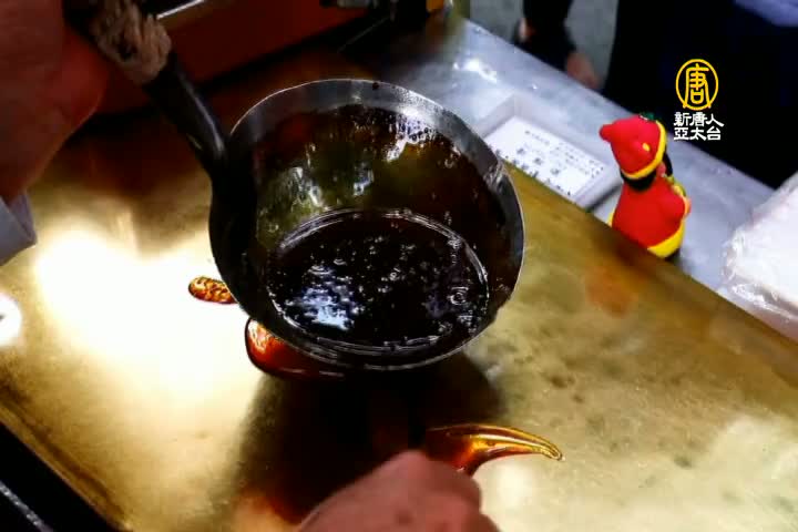 畫糖人 劉輝煌:「(那個糖怎麼控制),糖哦,就是煮到金黃色的啊。」