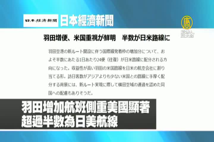 【新唐人亞太台 2019 年 02 月 13 日訊】來看到日本經濟新聞報導,羽田增加航班側重美國顯著,超過半數為日美航線。