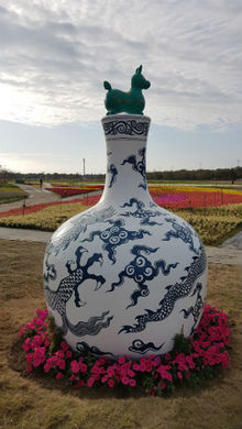 另外,南院也搭配「花事‧閑情─品味花器與生活特展」,在園區北側藝文廣場,佈置2.6公頃花海及巨型青花龍紋天球瓶藝術裝置,波斯菊、向日葵、薰衣草等花卉爭奇鬥豔,繽紛到3月。