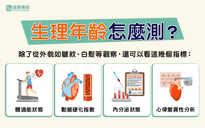 一個人的年齡除了可從外觀是否有皺紋、白髮等來加以判斷,然而生理年齡也很重要。(圖/健康傳媒製作)