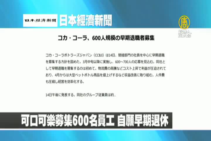 【新唐人亞太台 2019 年 02 月 15 日訊】來看到日本經濟新聞報導:可口可樂募集600名員工,自願早期退休。