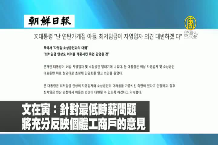【新唐人亞太台 2019 年 02 月 15 日訊】來看到韓國朝鮮日報報導:南韓總統文在寅表示,針對最低時薪問題,將充分反映個體工商戶的意見。