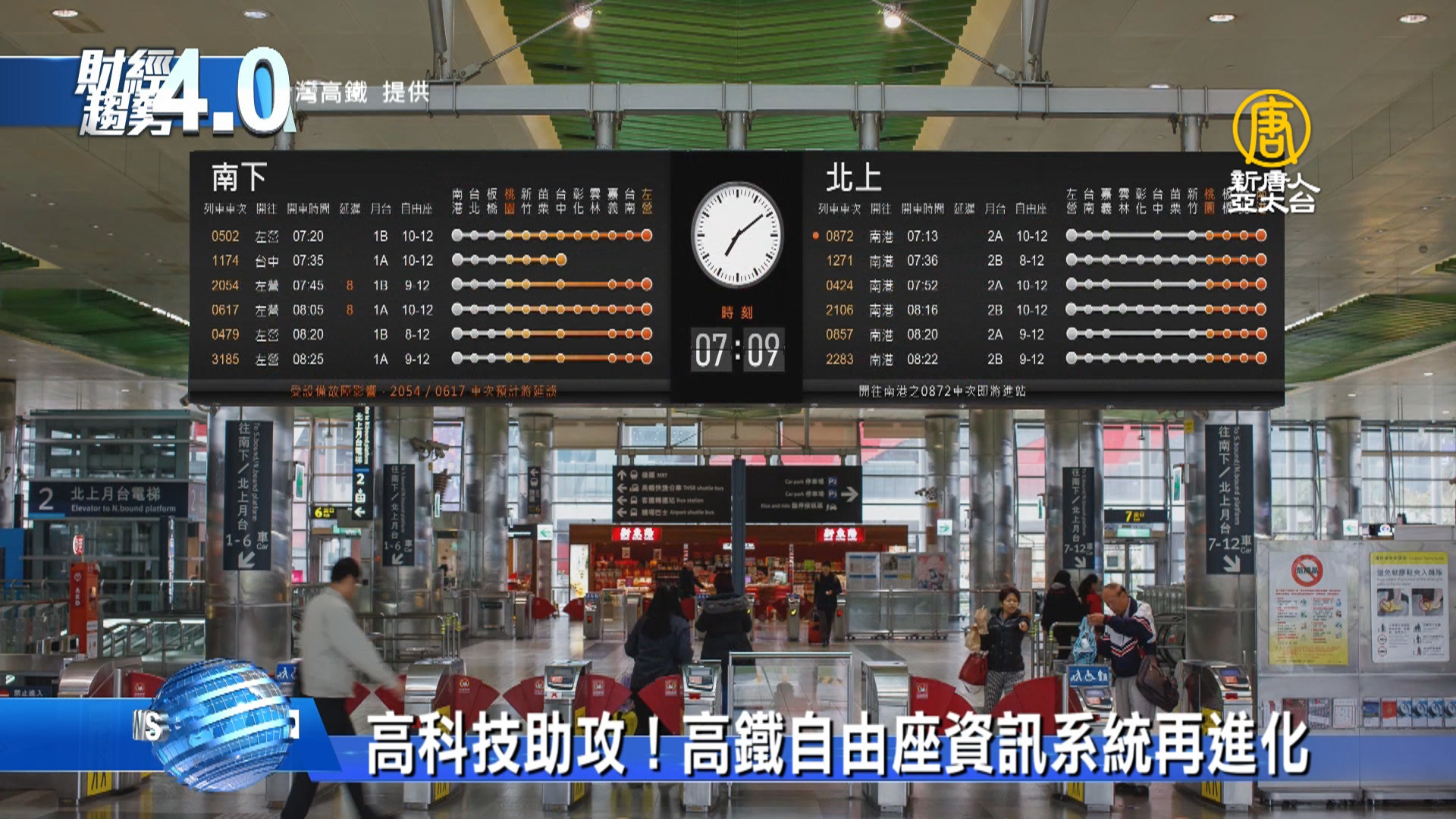 【新唐人亞太台 2019 年 02 月 16 日訊】觀眾朋友有過匆忙搭車,卻上錯列車的經驗嗎?高鐵攜手台灣兩大科技公司,打造新一代旅客資訊系統,透過車站大廳、月台上各處的電子顯示板,提供旅客更詳細的搭車資訊,像是每一列車的燈箱,也會顯示是自由座還是對號座,預計將會在2021年正式上線。