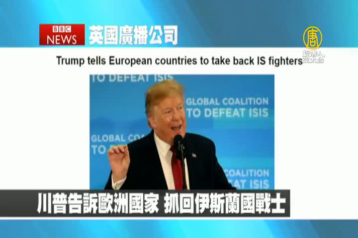 【新唐人亞太台 2019 年 02 月 18 日訊】繼續是英國廣播公司BBC的報導:川普告訴歐洲國家,抓回伊斯蘭國戰士並審判。