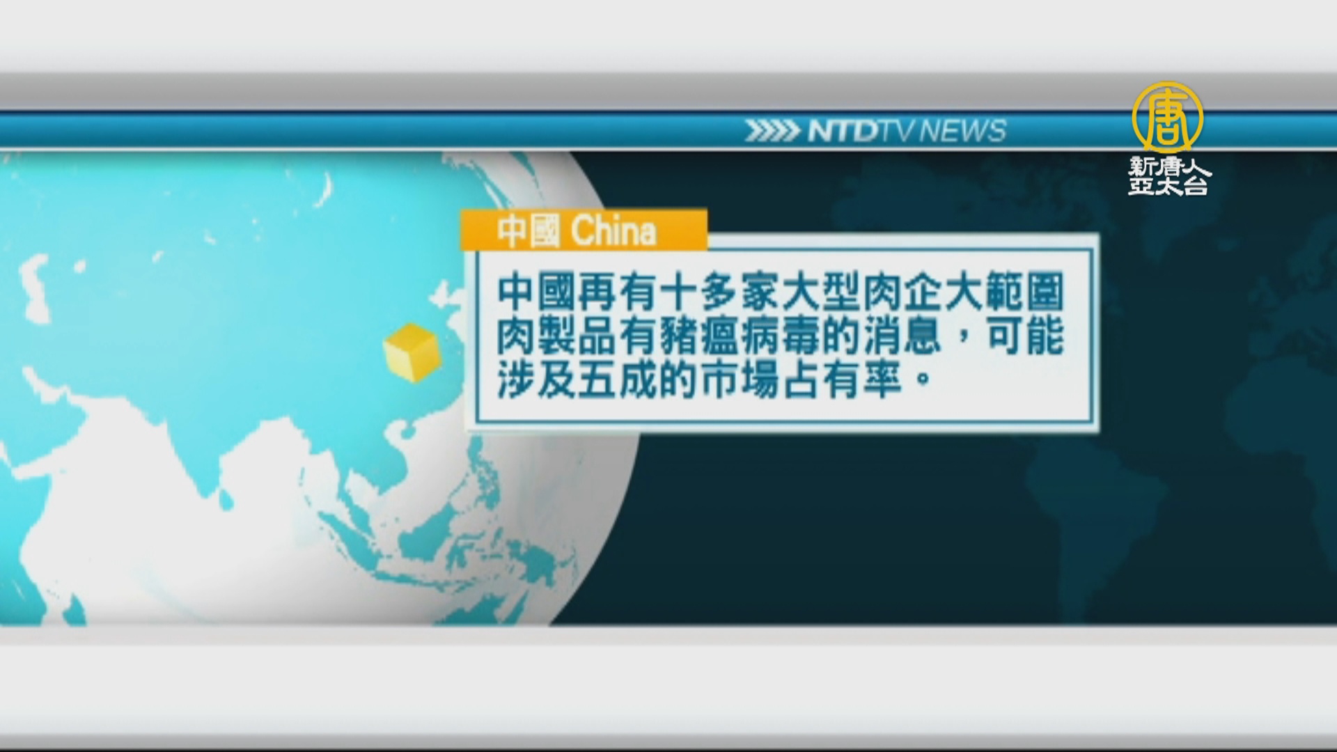 中國再有十多家大型肉企大範圍肉製品有豬瘟病毒的消息,可能涉及五成的市場占有率。