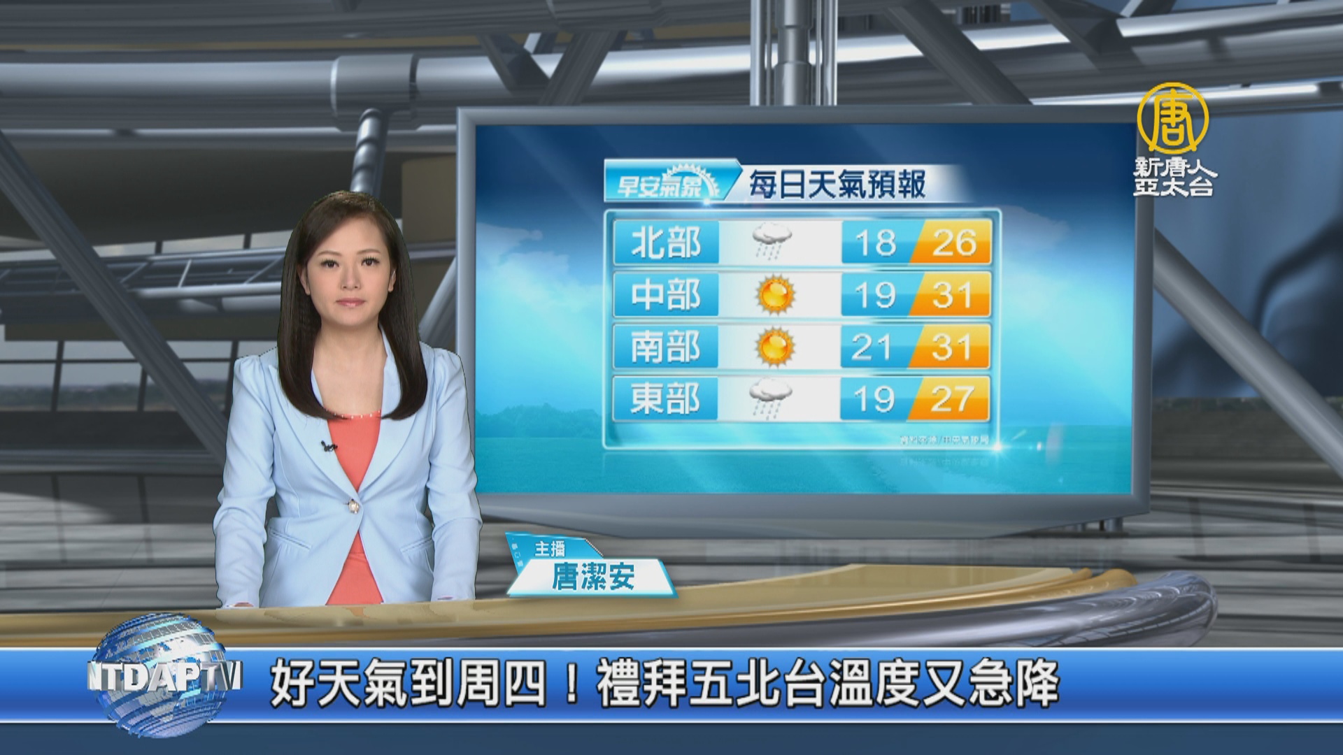 【新唐人亞太台 2019 年 02 月 20 日訊】歡迎您收看2月20日的早安新唐人,我是唐潔安,先來帶您關心今天的天氣情況。昨天各地都明顯回暖,台北最高溫也在25度以上,今天,全台也都是舒適到微熱的好天氣;不過,到了本周五東北季風靠近,北台灣氣溫又會降到20度以下。提醒您留意。帶您一起來看到國際媒體重要訊息。