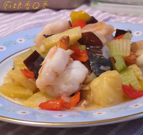 這道酸酸甜甜的鳳梨蝦仁,我用了一些泰國料理的元素,馬上就吸引女兒的眼球