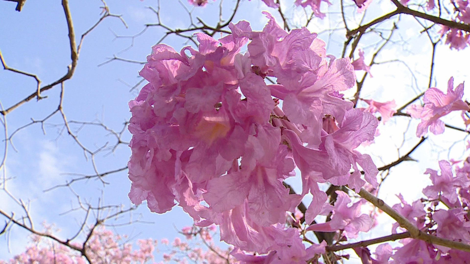 【新唐人亞太台 2019 年 02 月 25 日訊】春暖花開,嘉義縣市的紅花風鈴木、以及木棉花,相繼開花,尤其是靠近高鐵大道一帶的紅花風鈴木,粉紫色花球相當吸睛,還有故宮南院旁的木棉花道,花朵紛紛盛開、爭奇鬥豔,吸引大批民眾前往賞花拍照。