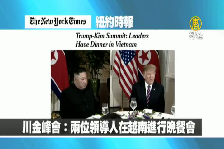 【新唐人亞太台 2019 年 02 月 28 日訊】首先來看到美國紐約時報報導:川金峰會,美國總統川普與北韓領導人金正恩在越南進行晚餐會。