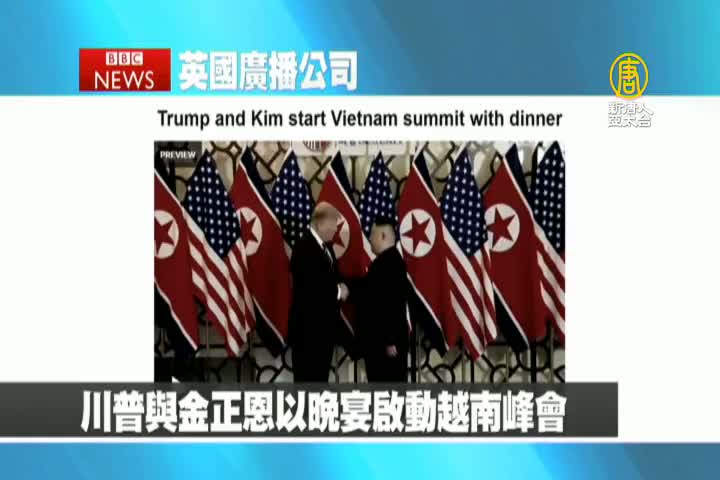 【新唐人亞太台 2019 年 02 月 28 日訊】繼續是英國廣播公司BBC的報導:川普與金正恩以晚宴啟動越南峰會。